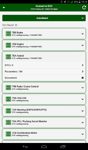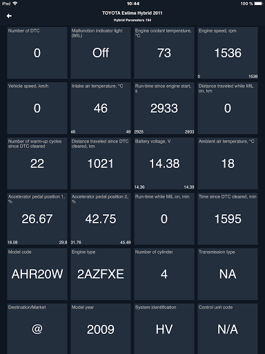 The extended functionality described above will be available after purchasing ‘Toyota (Lexus) + Hybrid’ plugin (see the ‘Plugins’ section of the app). Prior to buying the plugin, we recommend to perform free trial and check the app operation with your car, ELM327 adapter, and mobile device. If compatible, all the supported control units and parameters will be displayed but some values will be closed with ## until the plugin is purchased.