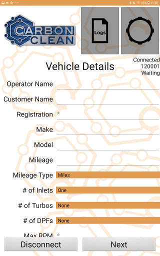 Carbon Clean App for using the DPF Reconditioning Equipment