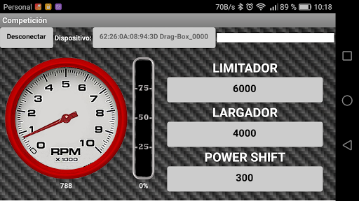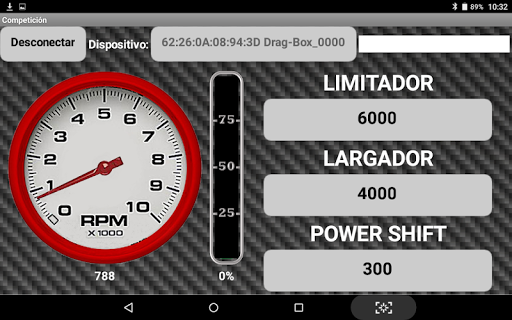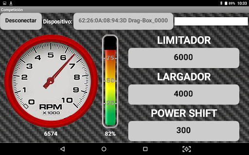 Puedes también visualizar en tiempo real parámetros del vehículo como ser las RPM del motor y el porcentaje de activación del acelerador.