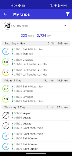 The app automatically detects motorized trips without any action on the part of the driver. It collects driving data and provides the driver with an analysis of each trip and statistics to monitor his progress. The analysis includes up to 4 scores: