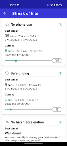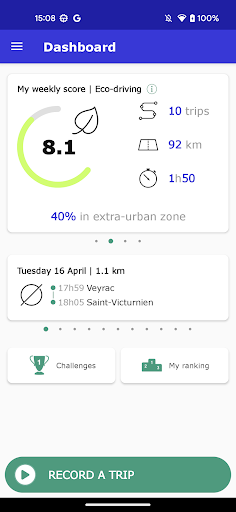After each trip, the driver automatically receives the scores and tips on how to do better next time. For each score, the driver can also see his progress in the ranking of his organization.