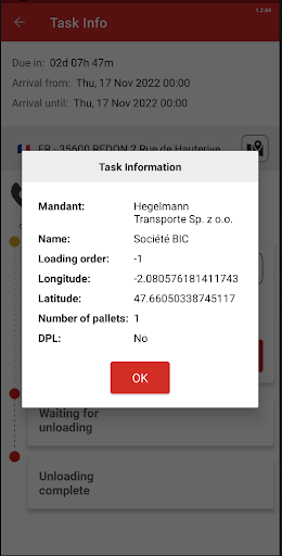 – Receive and view order information (location, pallets, dangerous goods etc.)