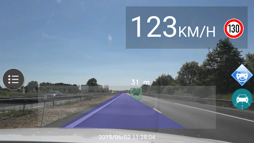 Driver Assistance integrates a video recorder (Dash Cam) and haves functions of lane tracking, anti-collision detection, highway follow mode and speedometer.