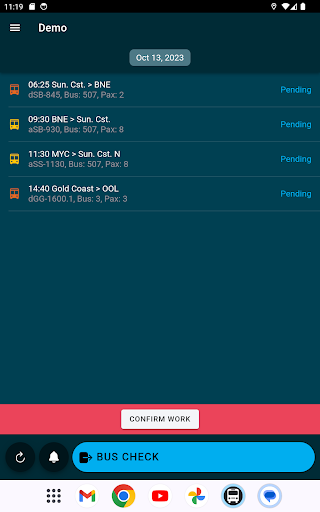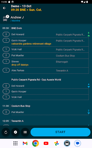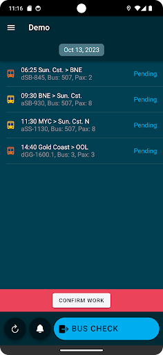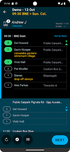 Drivers can view their latest trips, mark passengers as boarded or set down. Bus Checklist can be submitted prior to starting trips.
