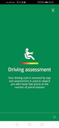 DrivingGo evaluates your driving style based on mobile sensors, and a good driving style rating is used to get a lower fuel price at gas stations. With a good rating and a good and safe driving style, oil companies that have a contract with DrivingGo will reward you with the lowest price of gasoline at their gas stations. By showing the ID code from the application at the gas station cashier, you will pay the lowest fuel price.