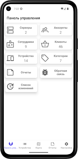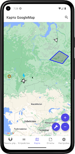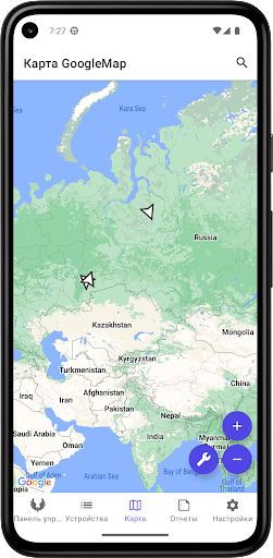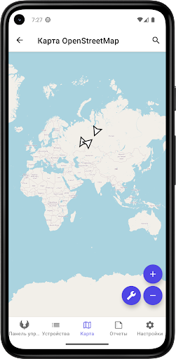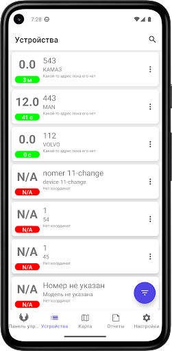 DroidFleetRIW работает с различными приборами для контроля транспорта и носимыми трекерами для контроля персонала.