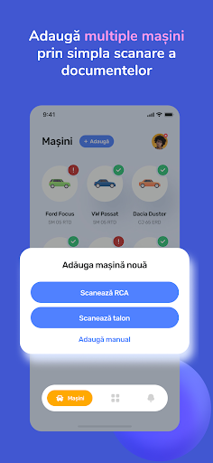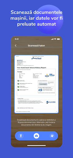 Scanează documentele necesare pentru a o adăuga în aplicație. Procesul e simplu și rapid, iar tu vei avea la îndemână toate actele mașinii tale într-o clipă.