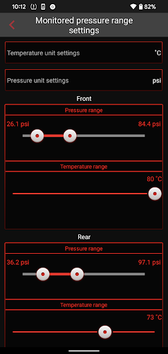 5. Tire pressure Unit: psi, kPa, Bar; Temperature unit: ℉,℃ ; Allows both Temperature/Pressure limit setting.