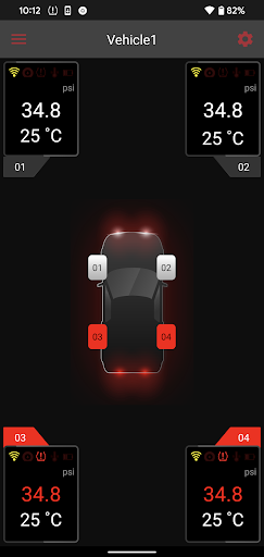 BLE TPMS (Bluetooth Low Energy Tire Pressure Monitoring System) app combined with the Users smart phone allows Real-time updated data and warning messages to display without any extra cables or extra monitors, providing a safe and comfortable environment for the driver.