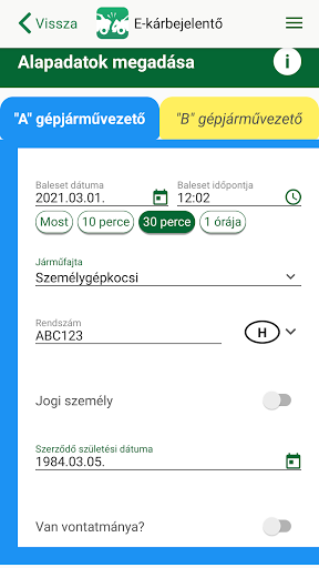 • a személyes- és gépjárműadatok az alkalmazáson belül előtöltéssel elmentésre kerülhetnek, így elég egyszer megadni azokat