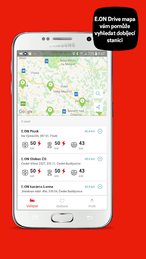 Pomocí mobilní aplikace E.ON Drive snadno a rychle najdete dostupné dobíjecí stanice pro svůj elektromobil. Využijte individuální možnosti vyhledávání dobíjecích stanic, zjistěte dobíjecí výkon a cenu za dobíjení. Plaťte pohodlně se zvýhodněným tarifem E.ON Drive nebo jednorázově kreditní kartou a vstupte do světa elektromobility s námi. Pro získání zvýhodněného tarifu E.ON Drive navštivte naši webovou stránku eon-drive.cz