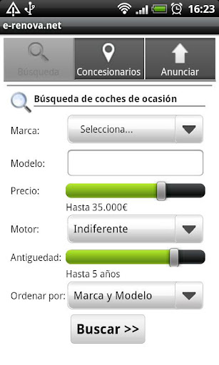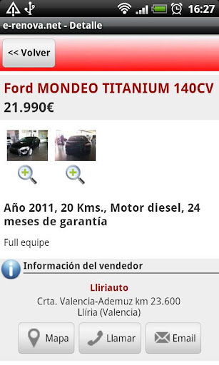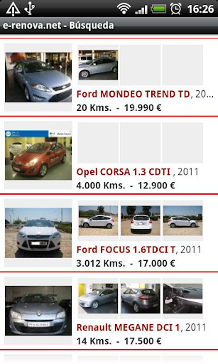 Aplicación del portal dedicado exclusivamente a la compra y venta de coches de segunda mano e-renova.net.
