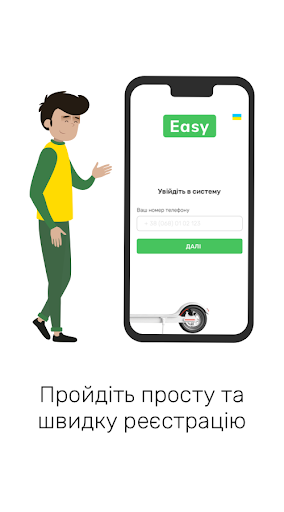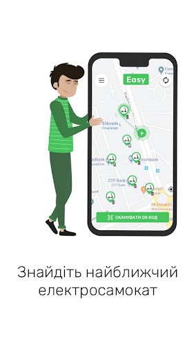 Easy – це сервіс шерінгу електросамокатів, на яких Ви можете пересуватись містом і забути про затори на дорогах. Просто знайдіть самокат поблизу, зареєструйтесь в нашому сервісі і поїхали!