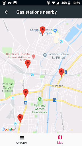 ■ Map display of all found gas stations incl. Navigation option