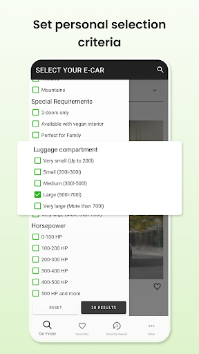 Preferred vehicles can be added to the favourites list – so you can find your personal e-car favourites again quickly and at any time without starting the search again from scratch.