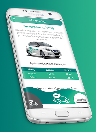 Η εφαρμογή eCarSharing, αποτελεί μια υπηρεσία διαμοιρασμού ηλεκτρικών οχημάτων για βραχυπρόθεσμη μίσθωση. Απευθύνεται σε κοινό που θέλει να ενισχύσει την κοινωνική ευθύνη του, ενισχύοντας επιπλέον αυτή την τάση επιλέγοντας ηλεκτρικό όχημα για τις καθημερινές του μετακινήσεις βοηθώντας το περιβάλλον.