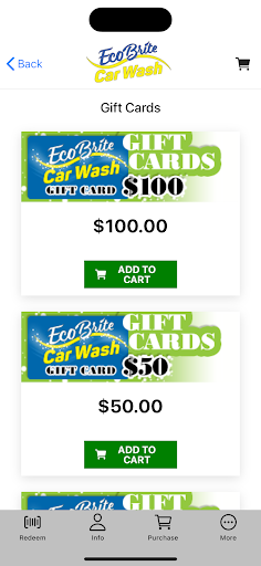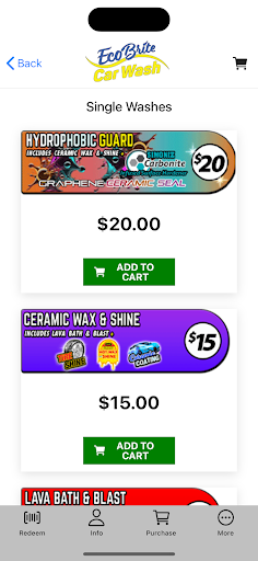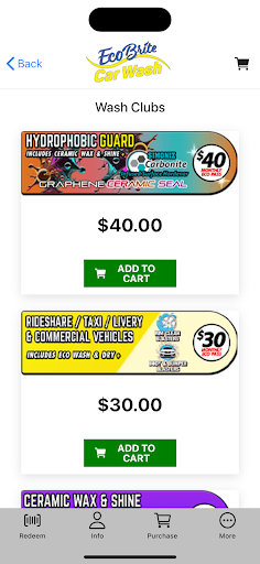 Eco Brite is the new, easy-to-use app that provides you with access to the area’s finest car washes. Use our mobile app to create your own secure account to purchase individual washes, book of washes, gift cards and to join subscription based wash clubs. You can add a credit card to your mobile app and make future purchases with just a card on file without having to open your wallet again. At the car wash, you can redeem your purchased wash remotely without rolling down your window to touch the screen. Simply enter your wash code or scan the barcode displayed in the app. You may also view a visual history of your purchases including date, time, service purchased, and remaining washes if a wash book is purchased. Eco Brite combines convenience and technology to keep your vehicle sparkling!