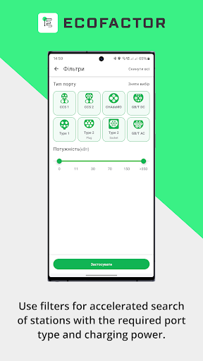 The app allows you to filter charging stations by connector type: Type 1, Type 2, CHAdeMO, CСS, EURO Socket, and build a route to a chosen station using popular navigators (e.g. Google Maps, Waze, Apple Maps, etc.)