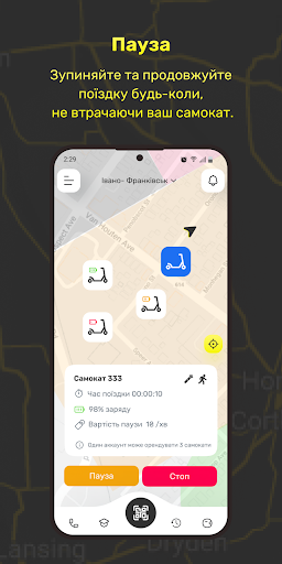 Знаходиш на карті в додатку найближчий до себе самокат
