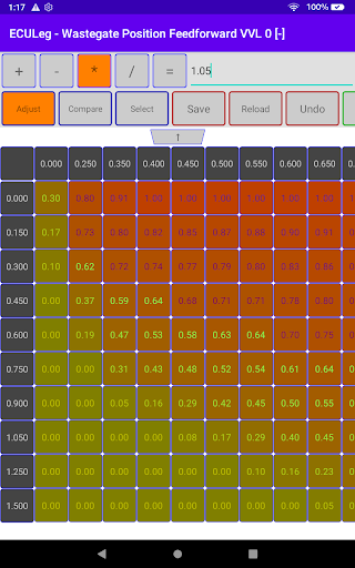 -values can be adjusted individually by selecting a function type, setting value and then by clicking a table cell. values can also be selected first and adjusted as a group by clicking the function type (+,-,*,/).