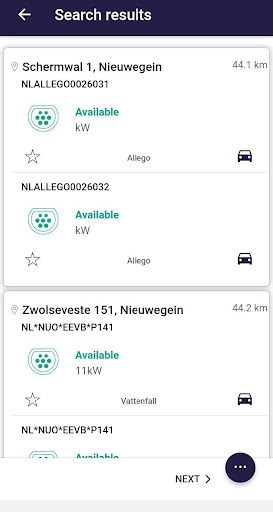 Search by city, zip code or charging station number. Use the search list for an overview of the charging stations that are currently available to you.