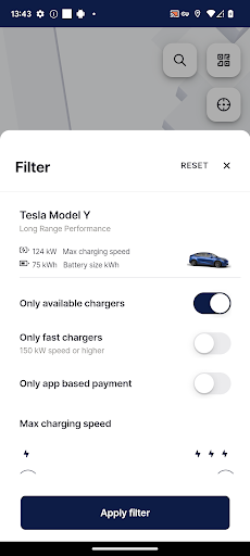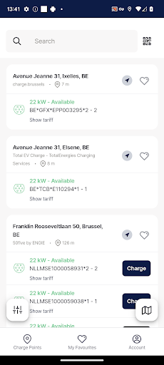 Search by city, zip code or charging station number. Use the search list for an overview of the charging stations that are currently available to you.