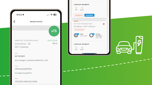 Sie erfahren, ob die gewünschte Ladestation gerade verfügbar ist, und können sich auf kürzestem Weg zu dieser navigieren lassen. eins-E-Mobil zeigt Ihnen außerdem, welche Preise aktuell an der Ladestation gelten und welcher Steckertyp passt.