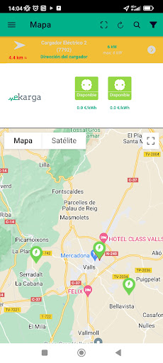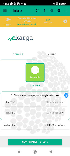 eKarga muestra la ubicación, la información y el estado de los distintos cargadores, permite al cliente activarlos e iniciar una carga, mostrándole gráficamente el proceso en tiempo real.