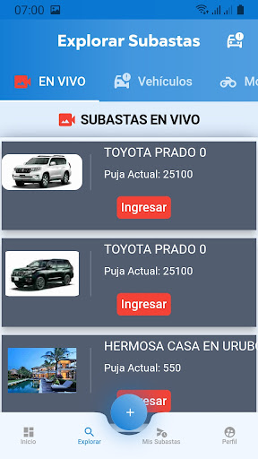 Aplicación de subastas electrónicas de Vehículos, Inmuebles y Artículos en general.