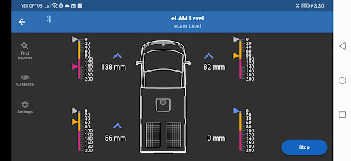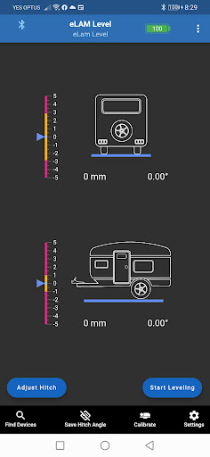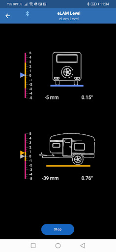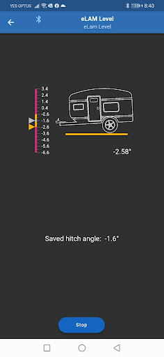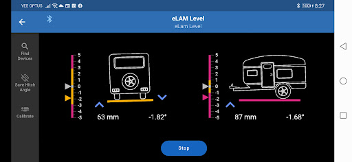 The eLam Level app works with the eLam Level device placed in your caravan or trailer to assist with finding close to level ground within your ramp height and finally allows you to visually level you caravan or trailer from within your car.