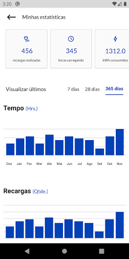 – Acompanhamento de recargas com energia e custo em tempo real.