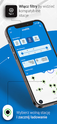 * Wyszukuj stacje filtrując po typie złącza, maksymalnej mocy lub statusie