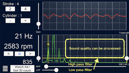 It is an application that estimates the engine Revolutions Per Minute [RPM] from the exhaust noise of a motorcycle or car when idling. By all means for maintenance of vehicles without tachometers such as scooters !