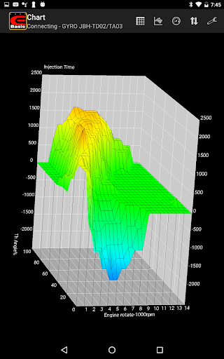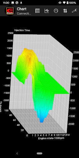 · The fuel map, showing real-time engine speed, throttle position of the current.