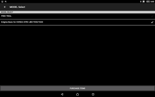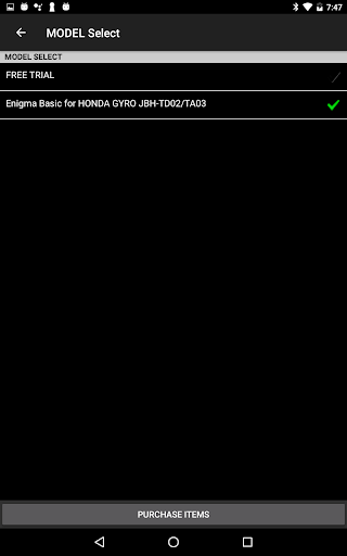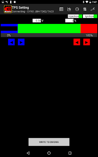 Application for Enigma Basic installs basic application free of charge. In the free application you can connect with Enigma Basic and display the tachometer and Throttle posion and you can try to see if your smartphone can connect with Enigma with BlueTooth.