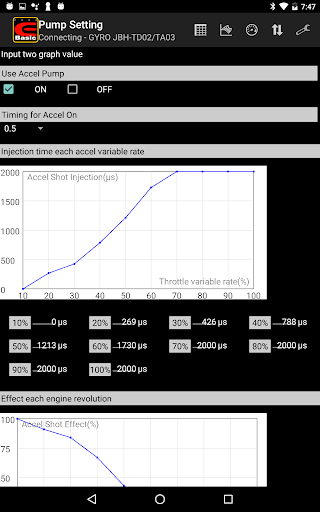 · The maximum 2500μS/-2500uS the engine rotation and throttle position for each fuel injection increase / decrease
