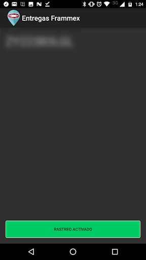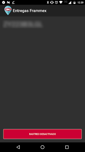 Aplicación para proporcionar datos de ubicación del dispositivo del repartidor Frammex al sistema de control digital de pedidos. En la pantalla se muestra el ID de dispositivo Android que se usa para vincular el pedido con el dispositivo del repartidor.