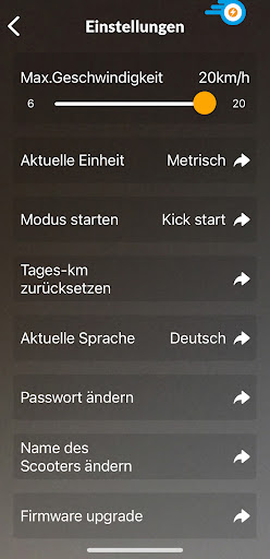 – Einstellung der maximal erreichbaren Höchstgeschwindigkeit