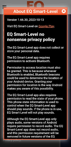 *Please note: Make sure your Bluetooth is turned on and when you install the app if it asks you to grant permission for EQ Smart-Level to access your device’s location, choose the “while using this app” option.