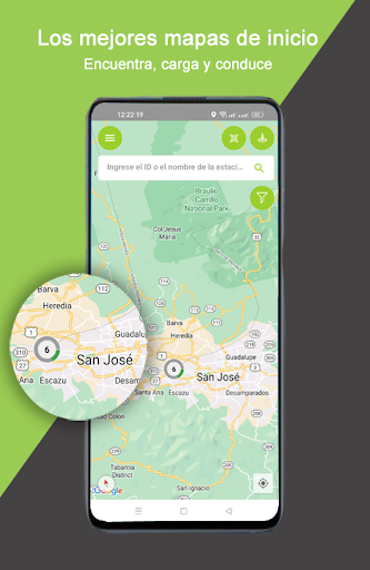 • Vista de mapa predeterminada para verificar la disponibilidad de la estación de carga cercana