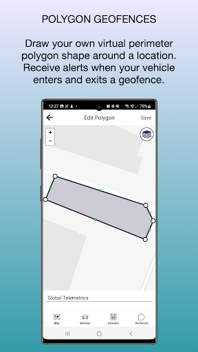 Geo Fences: Create, edit and draw your own Geo Fences. This function allows you to create a virtual perimeter around your chosen location and be alerted via Push Notification if your vehicle enters or exits this area.