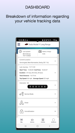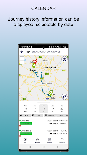 Calendar: View the historical journey data for your vehicle(s) including routes, speed, distance and location on a day by day basis.
