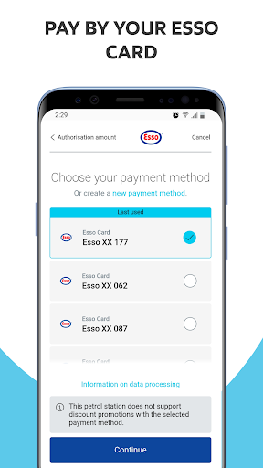 • You can pay for fuel with your Esso Card onboarded on your mobile phone at selected Esso stations – more locations will follow soon.