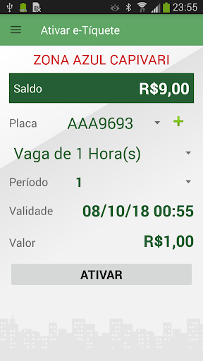 Com os créditos adquiridos o usuário poderá, através do APP EstacionamentoFacil, ativar o e-Tíquete pelas tarifas e períodos regulamentados pela Lei Municipal.
