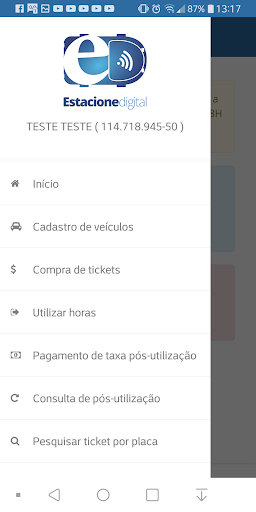 Acesse o menu lateral e escolha a opção Utilizar Horas. Verifique a quantidade de horas que tem disponível, selecione a placa do veículo e pressione o botão Utilizar. Pronto! Depois, basta confirmar na próxima tela e o ticket será validado.