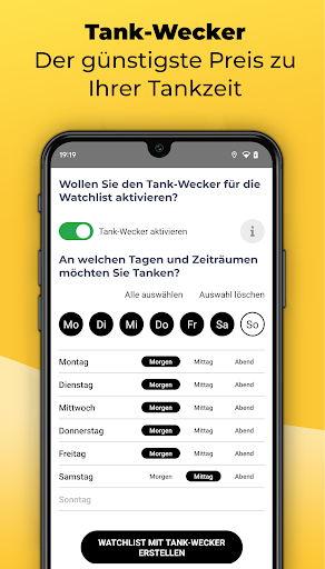 Behalten Sie die Preise von den für Sie erreichbaren Tankstellen im Auge. Mit den Watchlisten überwachen Sie bis zu 50 Tankstellen pro Liste gleichzeitig. Die erweiterte Tank-Wecker Funktion informiert Sie gezielt: Sie erhalten für die Zeiten an denen Sie Tanke wollen, vorab Preisvorhersagen und die aktuell günstigsten Tankstellen direkt per Push Nachricht.