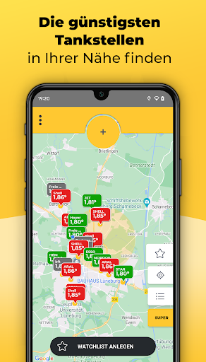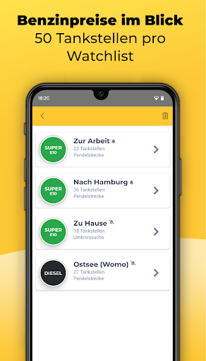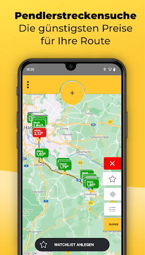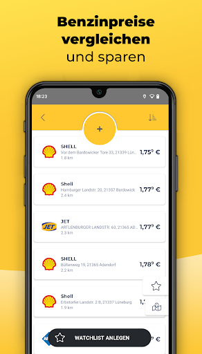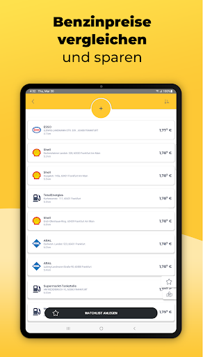 • Erstellen Sie Watchlisten und beobachten Sie bis zu 50 Tankstelle pro Liste