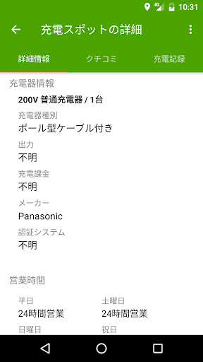 充電スポットの詳細情報として電話番号や駐車料金などの他、充電器の台数・メーカー・プラグのタイプ・対応している認証ネットワークの情報などが確認できます。地図上で行きたいスポットを見つけたら詳細を確認していただけます。