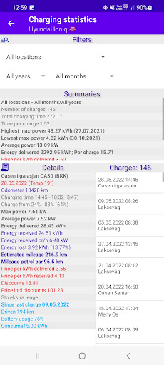 * Separate section in the statistics window that shows the actual power consumption, this includes the car’s maintenance charging of the 12v battery and remote heating/cooling of the car.