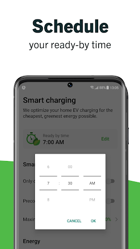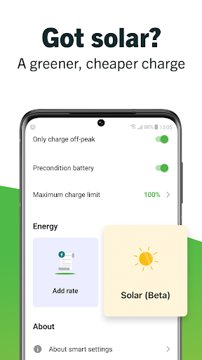• Automatically shift your charging away from peak times using the greenest, cheapest energy available